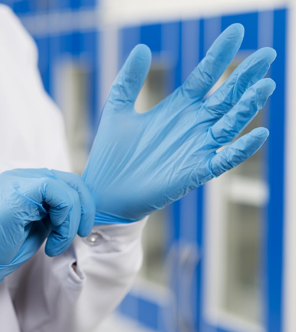 - rokavice iz različnih materialov (PE, nitril, lateks, vinil, bombaž)